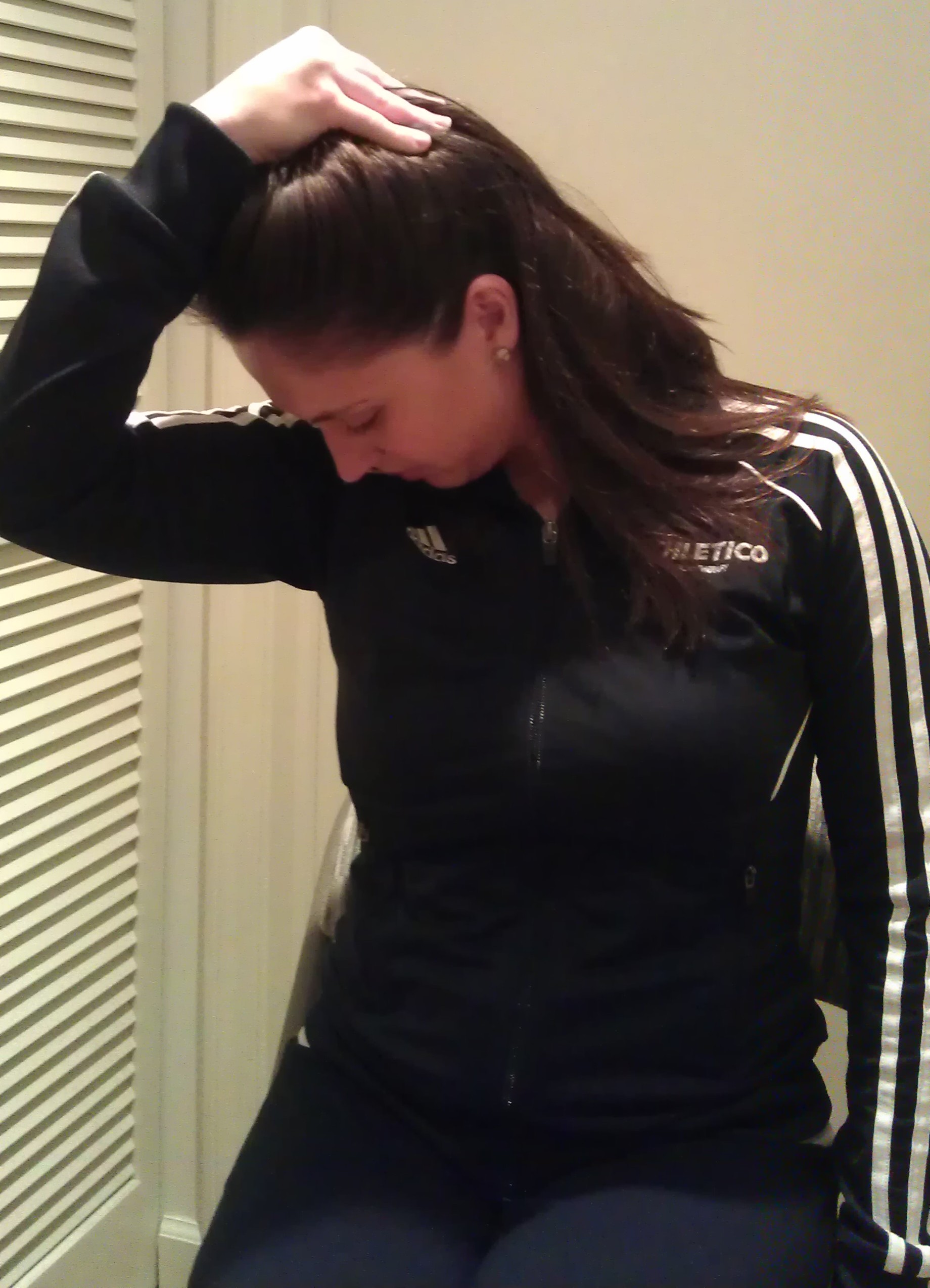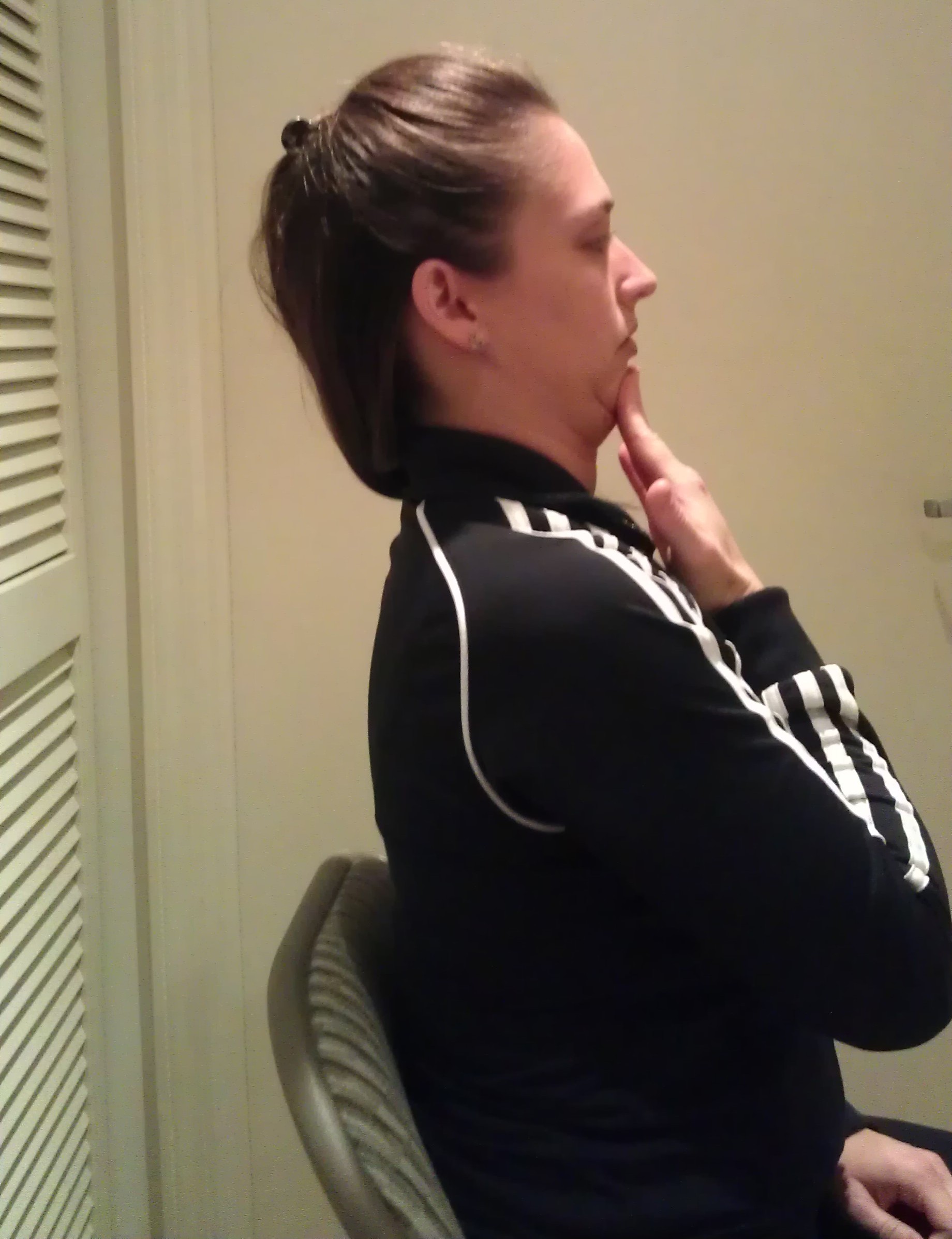 2. Levator Stretch: Using your right hand, pull your face down into your right armpit. Hold for 20-30 seconds, repeat 2-3 times and perform on the other side.