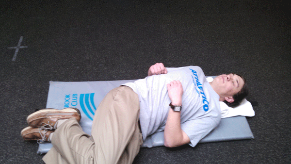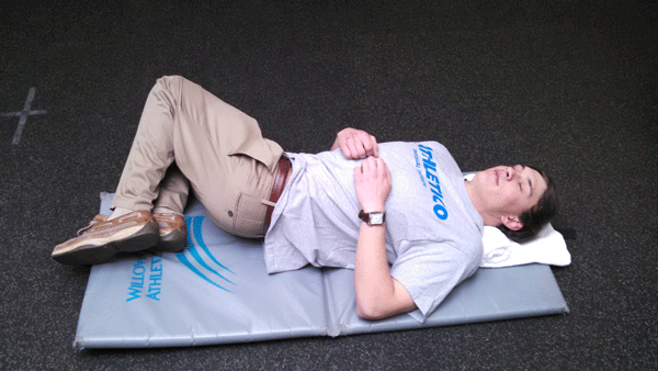 Start again by laying on your back and then with your arms by your side, let your knees rock from side to side in a slow and controlled fashion. This stretch will help improve mobility throughout your spine, especially the thoracic spine.