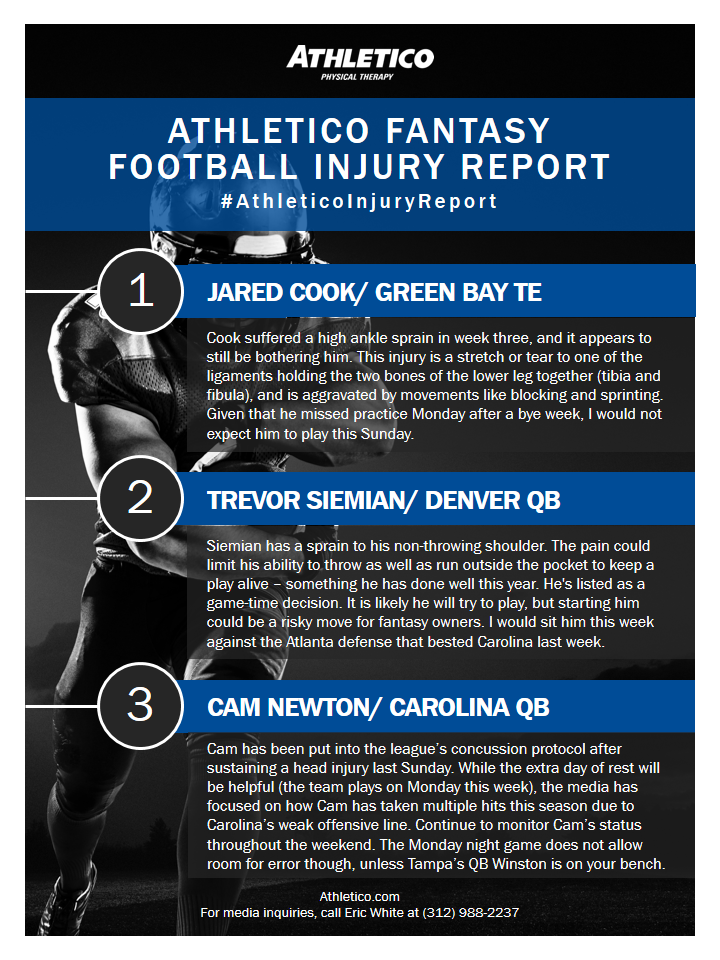 Athletico Fantasy Football Injury Report: Week 5 2016