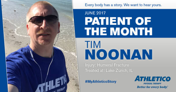 Two months after suffering a greater humeral fracture, Tim stopped making progress in therapy. His body was in pain and he was unable to focus on day to day activities. Before giving up, he met with his new physical therapist – Mackenzie from Athletico Lake Zurich.