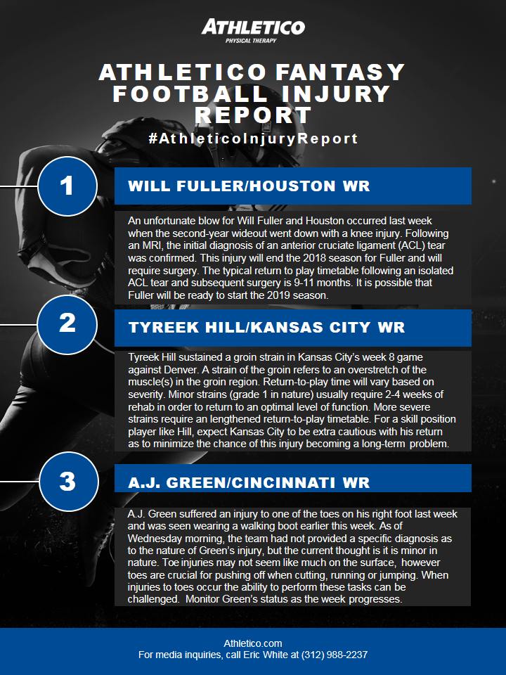 Athletico Fantasy Football Injury Report 2018: Week 9