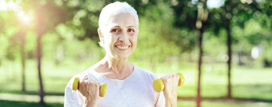 Many people have the misconception that older adults should not perform strengthening exercises such as lifting. This is false as long as the person is performing the exercises safely. As we age, we want to maintain or build muscle strength. Muscle strength in the older adult can help improve balance and function. The stress of lifting weights or performing body weight resisted exercise, such as squats or lunges, helps to promote bone and muscle health. There is no age limit to the body’s ability to gain muscle.