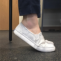 If you’re not able to stand up, raise your heels up (on the balls of your feet) to help with circulation for your lower legs. Activating the calf muscles can help pump blood and fluids toward your heart to help prevent ankle swelling.