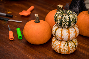 Avoid a horrific Halloween mishap by decorating pumpkins with paint, ribbons, flowers, or gluing on decorations to add that special fall flair. You can customize your pumpkin to fit your decor or style, without increasing your risk for injury. Commercial kits are available in stores that include accessories for a fun no-carve option.