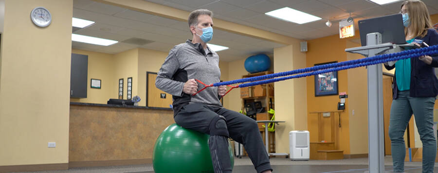 A structured physical therapy program was created to address Tony’s deficits. Over the course of several weeks, Tony was guided through exercises to address the weakness and pain in his right leg. Balance exercises were incorporated to assist with safety during daily tasks and walking. Heart rate and oxygen saturation were monitored during his use of a stationary bike or elliptical to assess safety and progress. Exercises for posture and breathing were used to help him sustain upright sitting posture and to minimize fatigue during daily tasks.