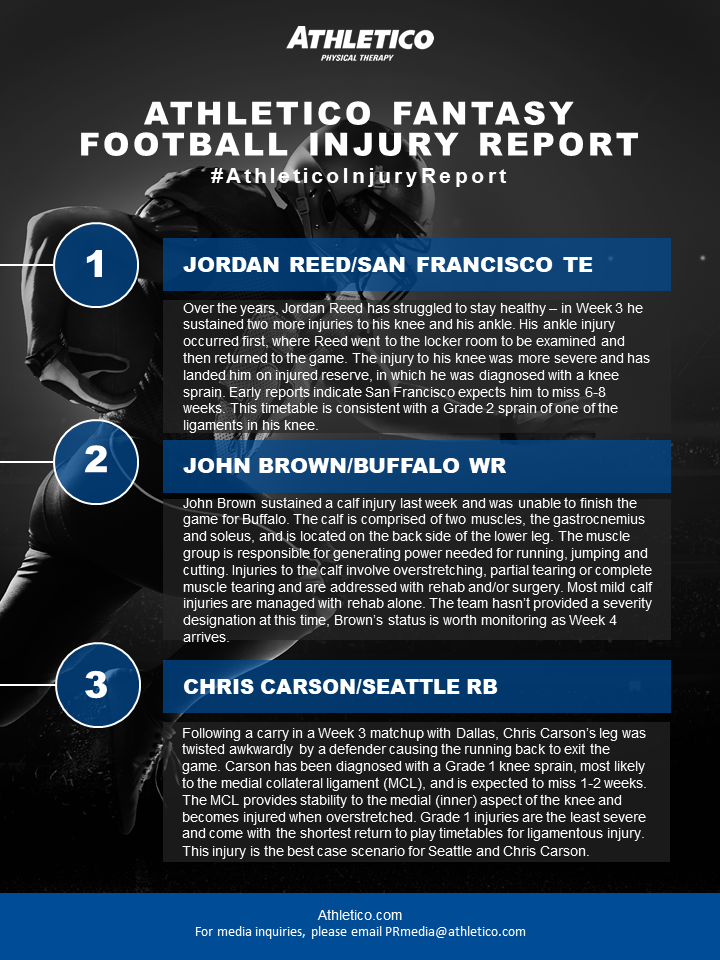 In this week’s #AthleticoInjuryReport, Brandon is discussing the injuries impacting Jordan Reed, John Brown and Chris Carson. Learn more by checking out the infographic below (click to enlarge):