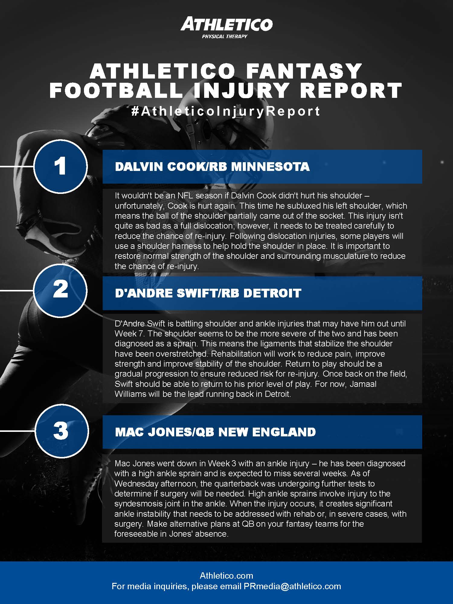 This week in the #AthleticoInjuryReport, you can expect Brandon to discuss injuries affecting Dalvin Cook, D’Andre Swift, and Mac Jones. Learn more by checking out the infographic below (click to enlarge):