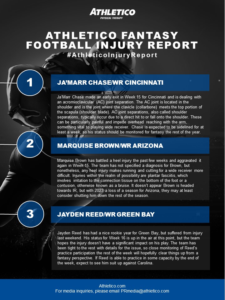 Athletico Fantasy Football Injury Report 2023: Week 16