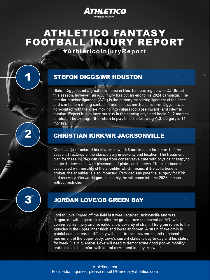 Athletico Fantasy Football Injury Report 2024: Week 9