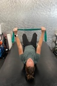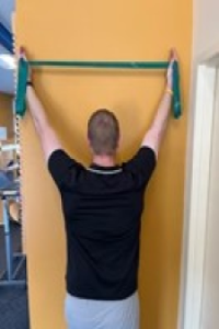 This exercise aims to pinch your shoulder blades towards your spine and into the foam roll as you pull the band apart.
