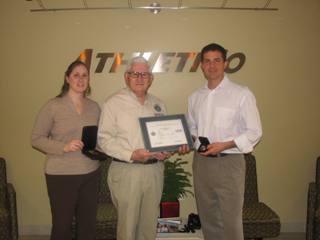 Photo Caption: AthletiCo President Mark Kaufman and Susan Rowe, Manager of Athletic Training Services, accept the award from George Graves, Illinois Committee Member, on Jason’s behalf.